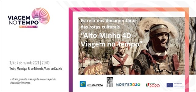Nos próximos dias 3, 5 e 7 de maio, pelas 21h00 horas, no Teatro Municipal Sá de Miranda, em Viana do Castelo, serão apresentados 8 documentários produzidos pela Associação AO NORTE, no âmbito do projeto “Alto Minho 4D - Viagem no Tempo”, promovido pela Comunidade Intermunicipal do Alto Minho.