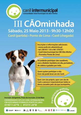 Depois do sucesso alcançado nas anteriores edições, o Canil Intermunicipal do Alto Minho volta a organizar, no próximo dia 25 de maio, mais uma "CÃOminhada” (caminhada de cães) pela vila de Ponte de Lima. A concentração está marcada para as 9h30, nas instalações do Canil, em Fornelos, Ponte de Lima.