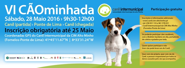 Depois do sucesso alcançado nas anteriores edições, o Canil Intermunicipal do Alto Minho volta a organizar no dia 28 de maio, mais uma "CÃOminhada” (caminhada de cães) pela vila de Ponte de Lima. A concentração está marcada para as 09h30, nas instalações do Canil, em Fornelos, Ponte de Lima.