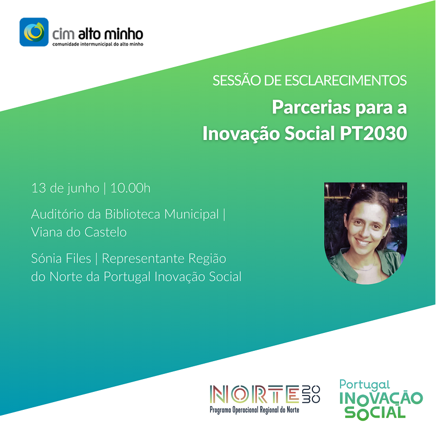 No próximo dia 13 de junho, terá lugar, em Viana do Castelo, uma sessão de esclarecimento sobre o Aviso NORTE2030-2024-8 "Parcerias para a Inovação Social", no âmbito do Norte 2030 – Programa Operacional Regional do Norte 2021-2027.